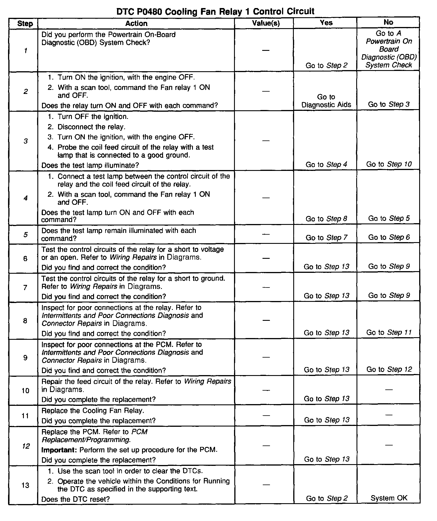 Output Driver Modules (ODMs) are used by the PCM to turn on many of the current-driven devices that are needed to control various engine and transaxle functions. Each ODM is capable of controlling up to 7 separate outputs by applying ground to the device which the PCM is commanding on. DTC P0480 set indicates an improper voltage level has been detected, which controls the #1 Fan Control Relay.