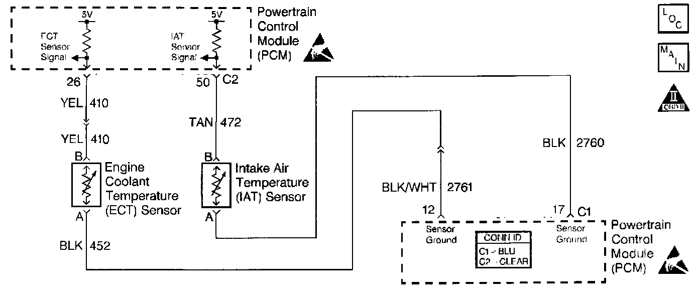 ^ Damaged harness. Inspect the wiring harness for damage. If the harness appears to be OK, observe the ECT display on the scan tool while moving connectors and wiring harnesses related to the ECT sensor. A change in the ECT display will indicate the location of the fault.