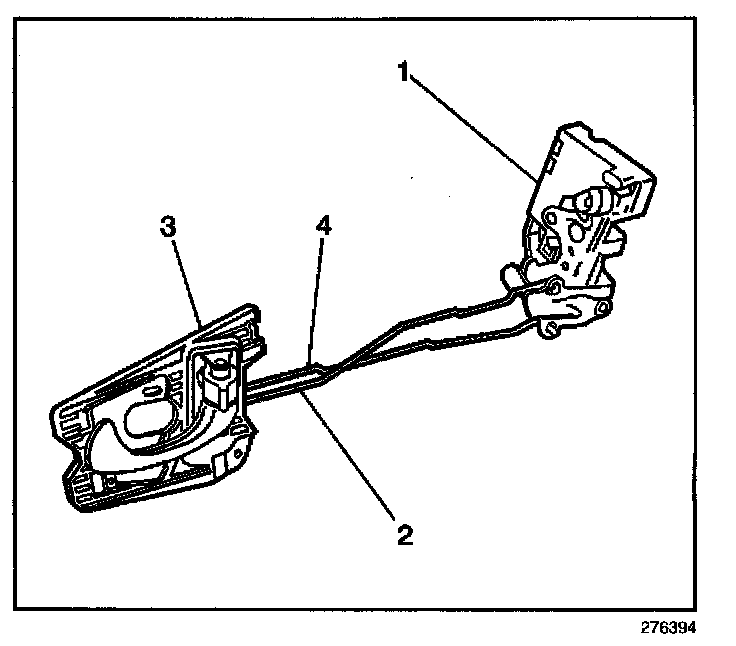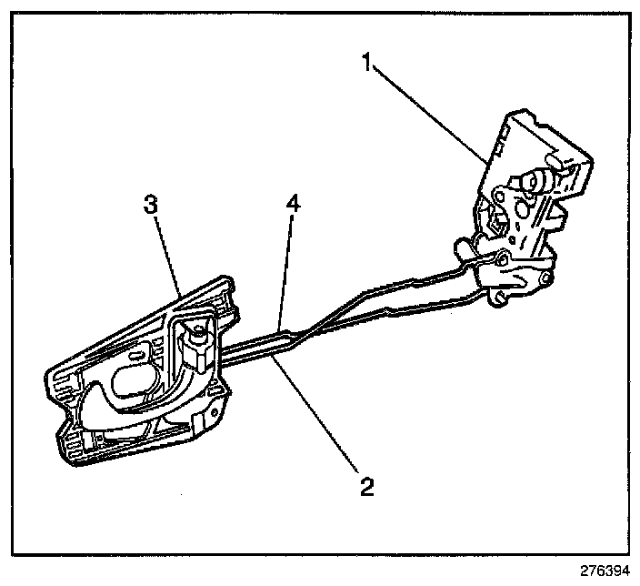 2. Remove the rear door locking rod (4).