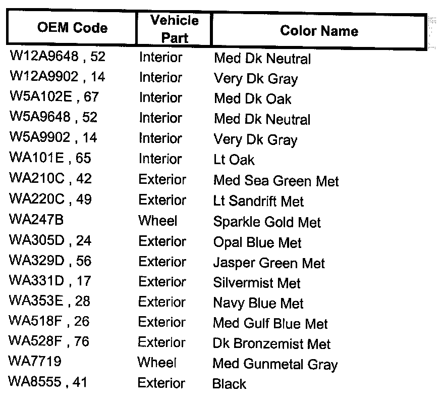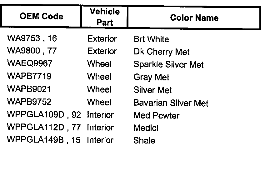 Paint Code Charts