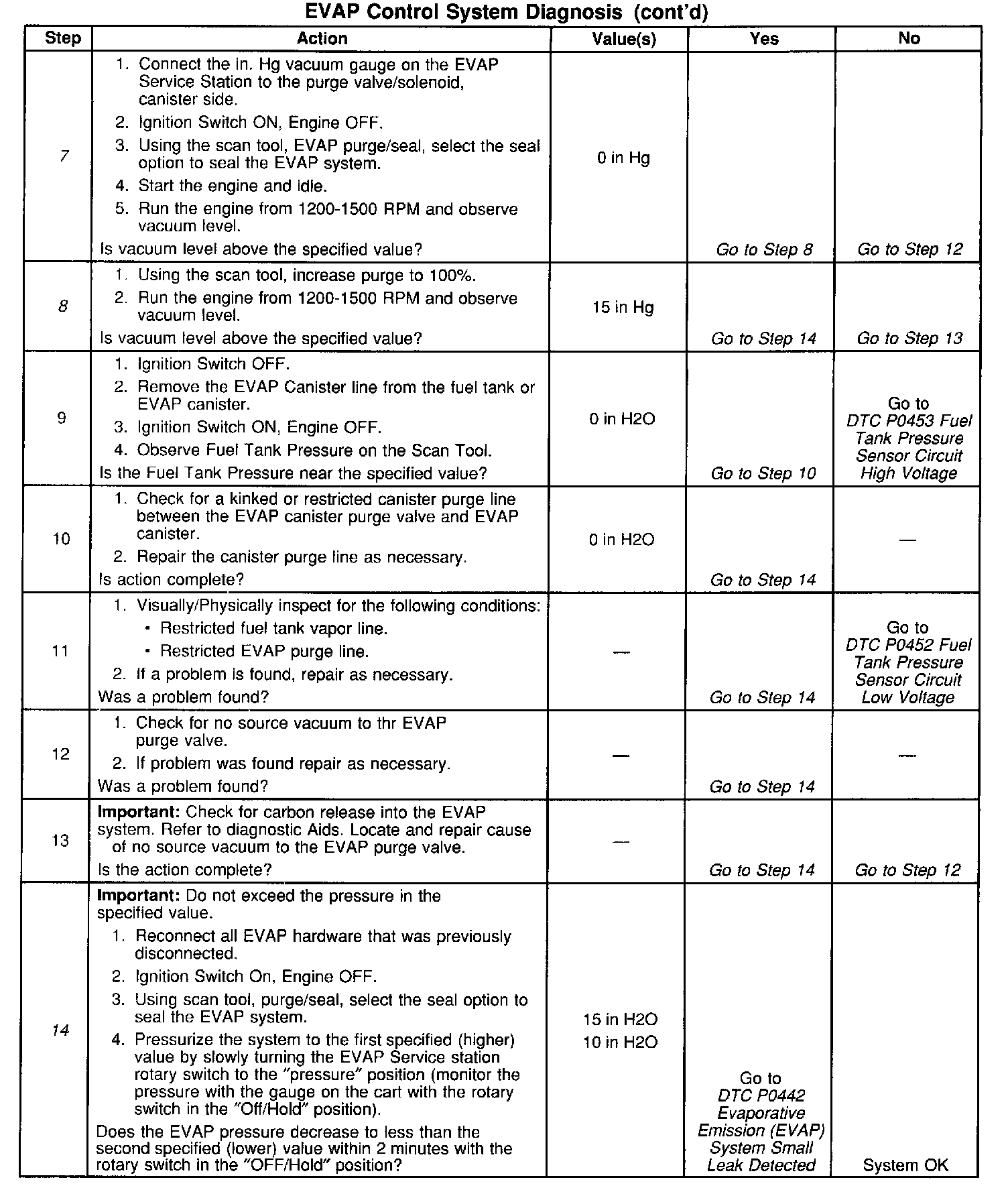7. Checks for a leaking or stuck open EVAP canister purge valve/solenoid, The scan tool should read within ±1.0 in. HG of the specified value.