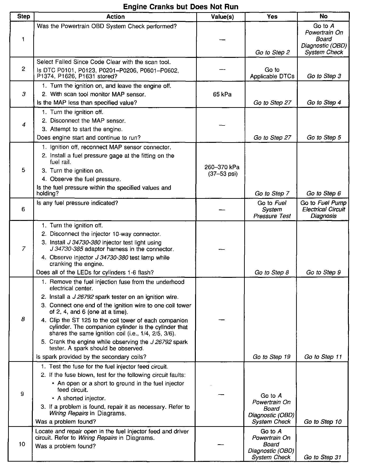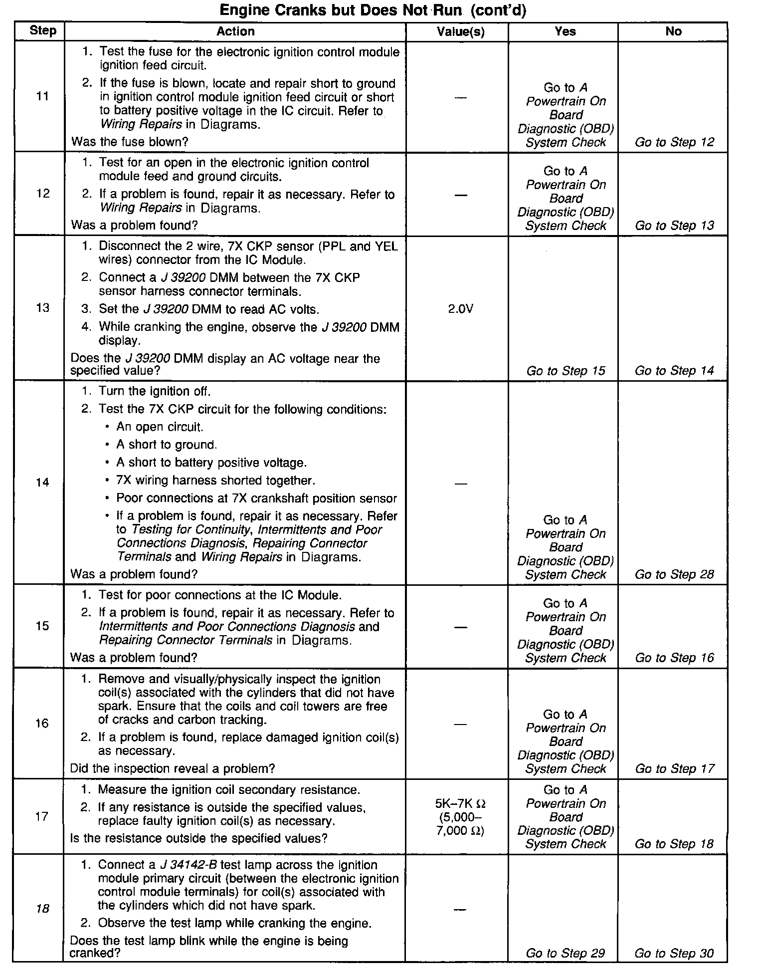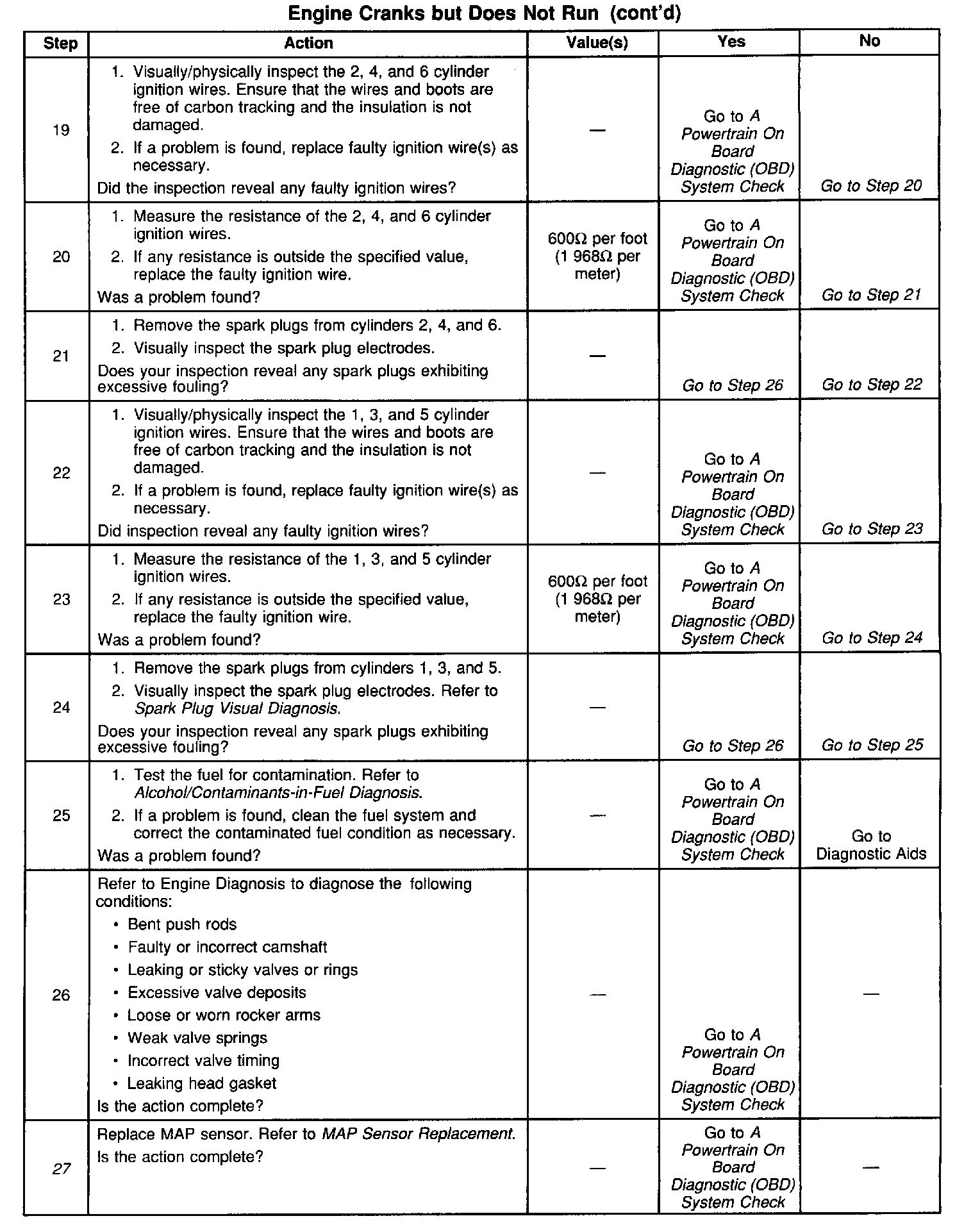 The number(s) below refer to the step number(s) on the Diagnostic Table: