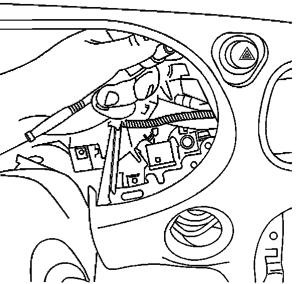 14. Connect the electrical connector to the new hazard warning switch and insert it through the center air outlet opening in the IP.