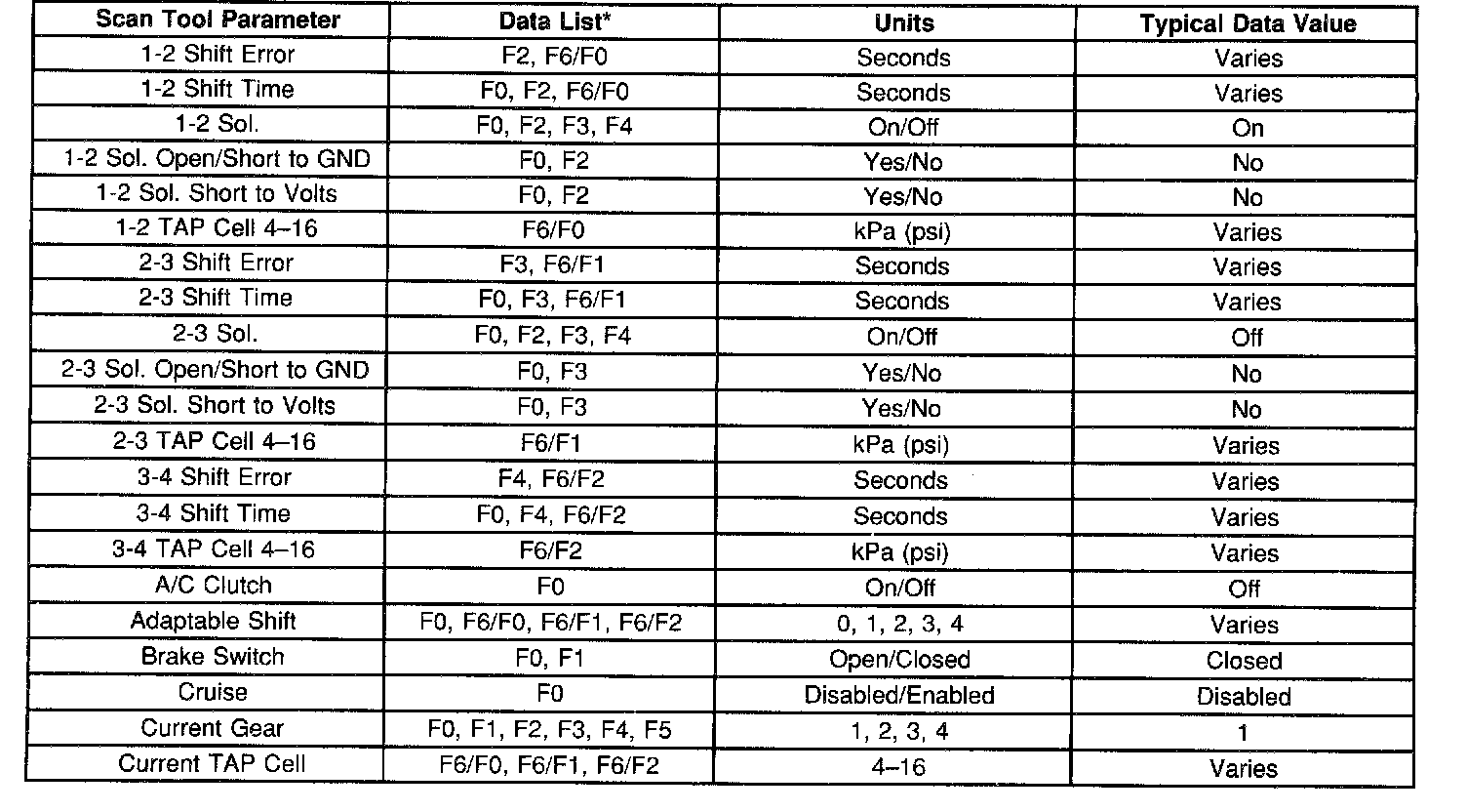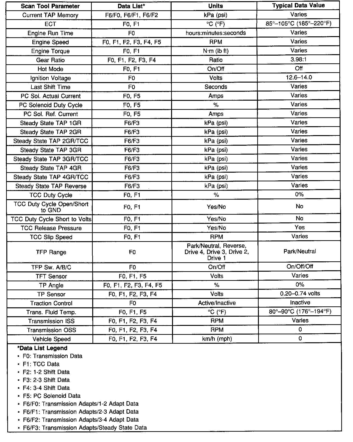 Only the parameters listed below are used for diagnosing. If a scan tool displays other parameters, the values are not recommended by General Motors for use in diagnosis. Scan tool values below were recorded under the following conditions: