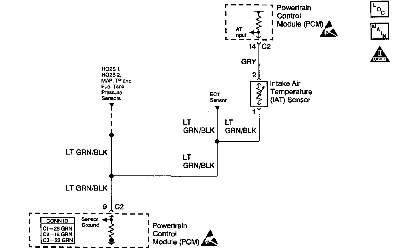 An intermittent malfunction may be caused by a fault in the IAT sensor electrical circuit. Inspect the wiring harness and components for any of the following conditions: