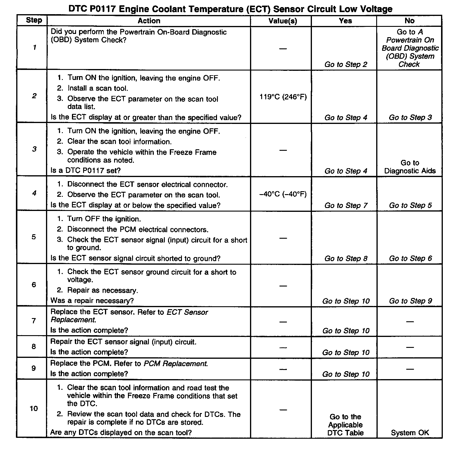 If the DTC P0117 cannot be duplicated, the information included in the Freeze Frame data can be useful in determining vehicle operating conditions when the DTC was first set.