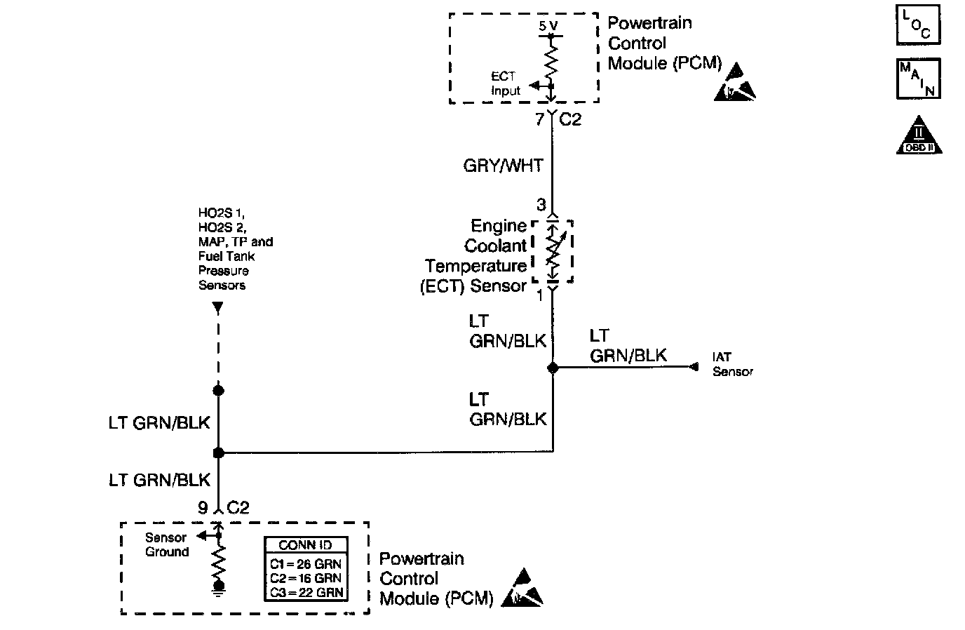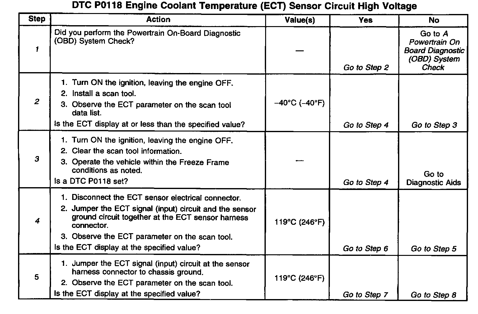 ^ A shorted to voltage ECT sensor signal circuit may cause a DTC P0118 to set.