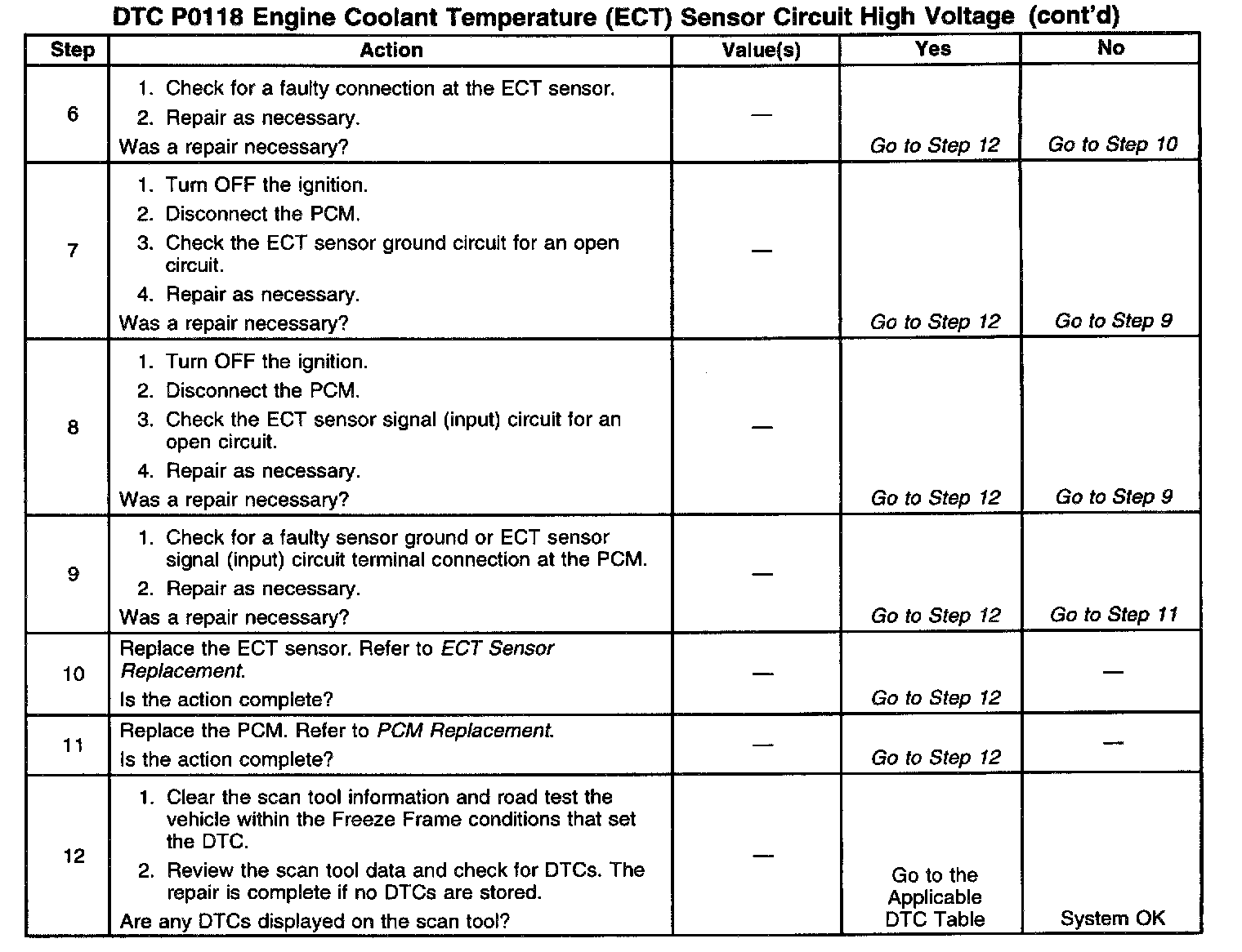 If the DTC P0118 cannot be duplicated, the information included in the Freeze Frame data can be useful in determining vehicle operating conditions when the DTC was first set.