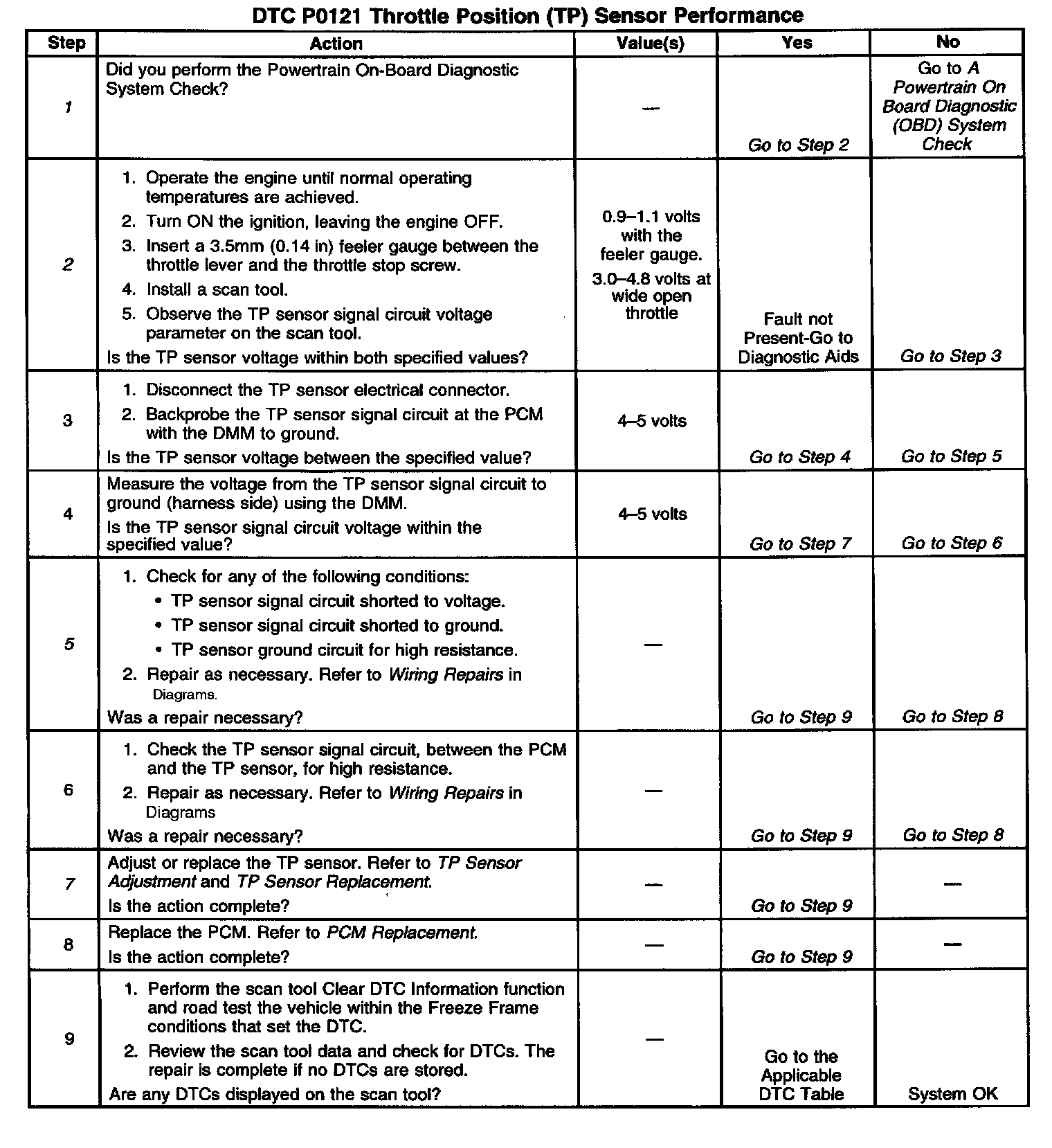 ^ A misadjusted TP sensor or a binding or stuck throttle plate could cause a DTC P0121 to set.
