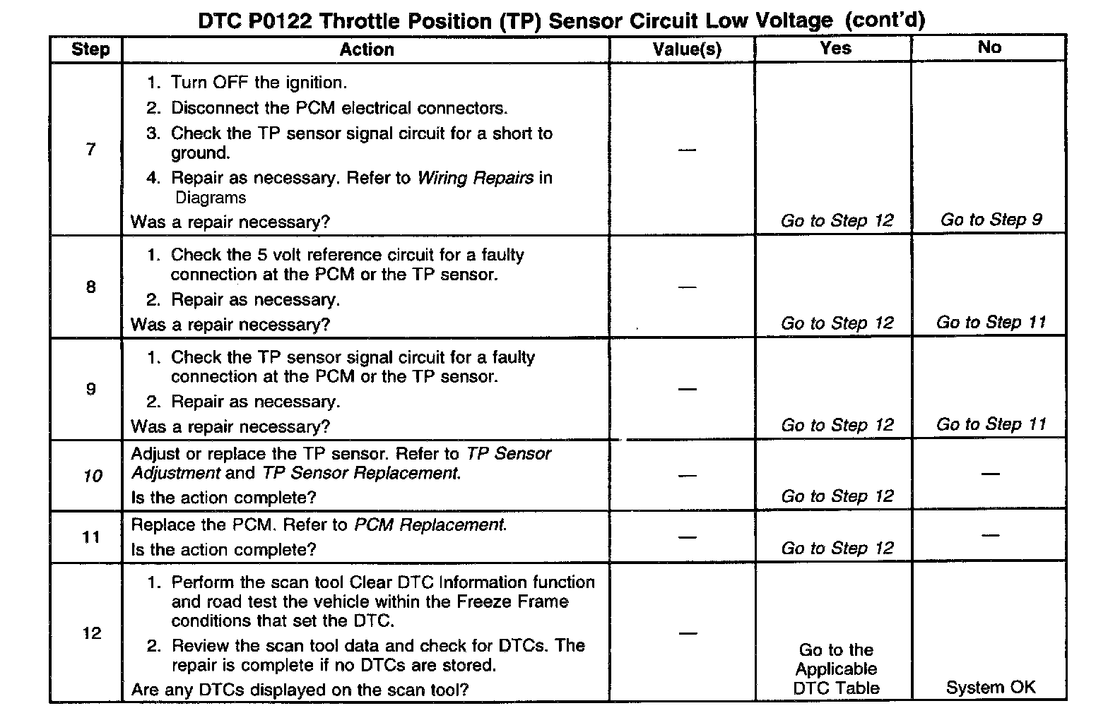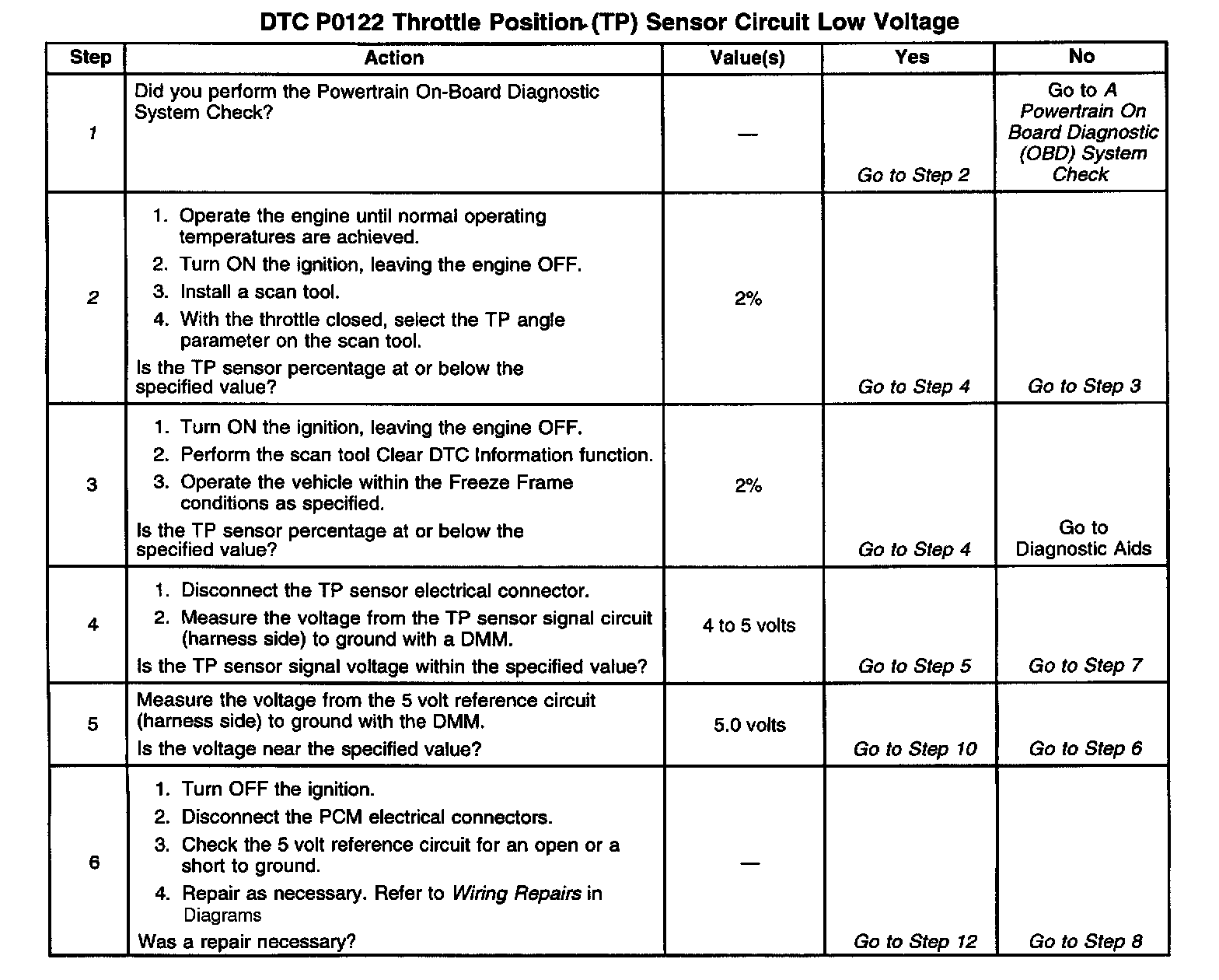 ^ A misadjusted TP sensor or a binding or stuck throttle plate may cause a DTC P0122 to set.