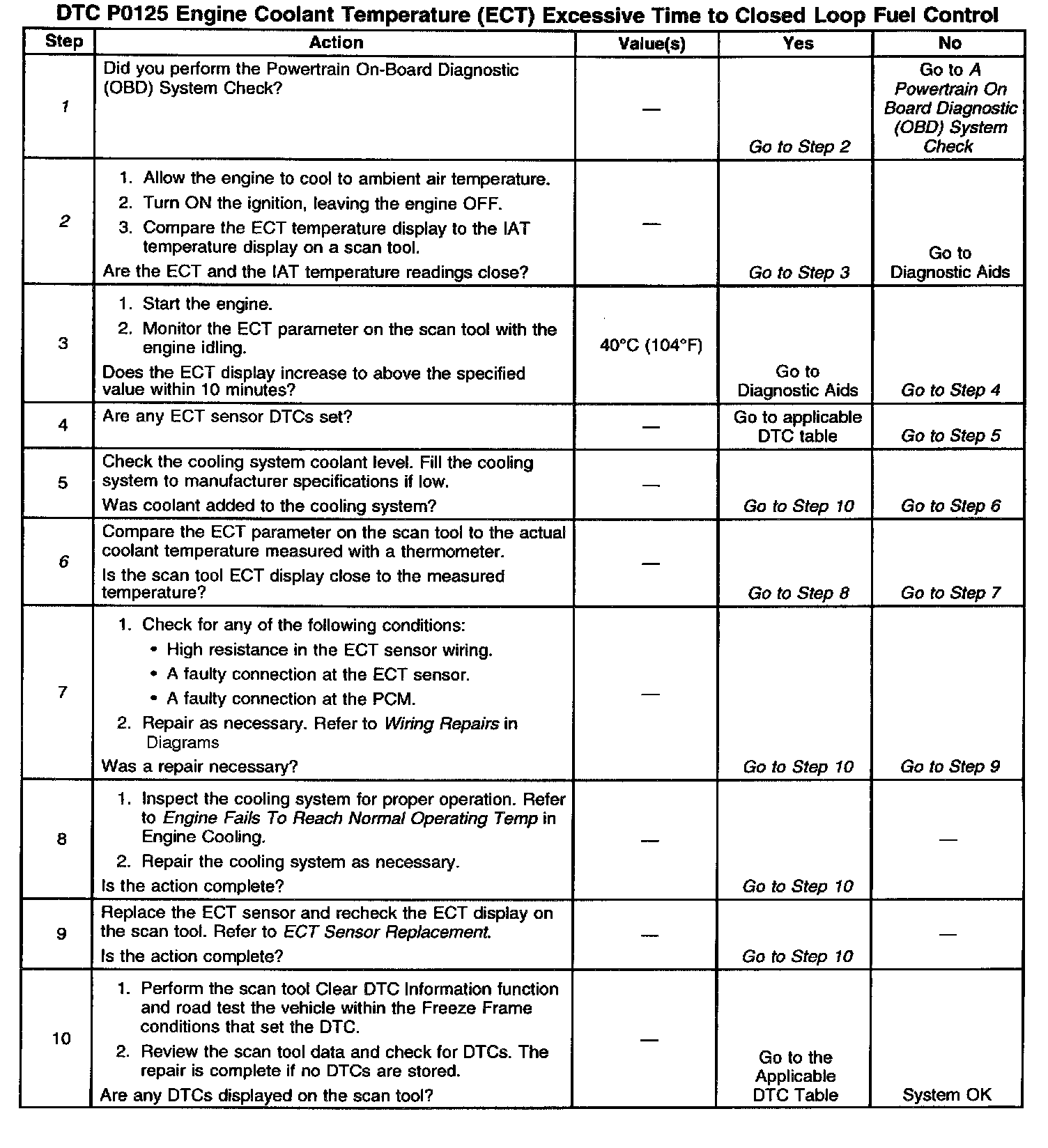 If a DTC P0125 cannot be duplicated, the information included in the Freeze Frame data can be useful in determining vehicle operating conditions when the DTC was first set.