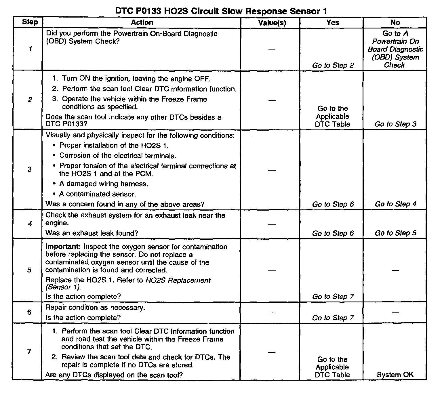 If a DTC P0133 cannot be duplicated, the information included in the Freeze Frame data can be useful in determining vehicle operating conditions when the DTC was first set.