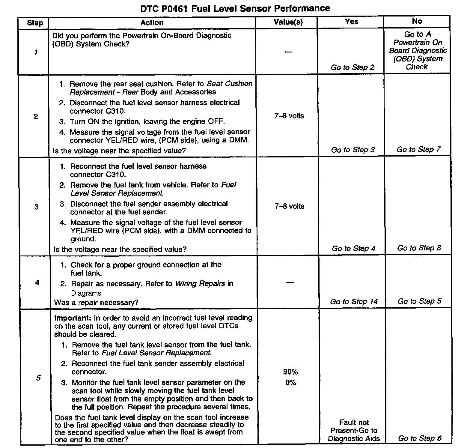 ^ A stuck fuel level sensor may cause a DTC P0461 to set.