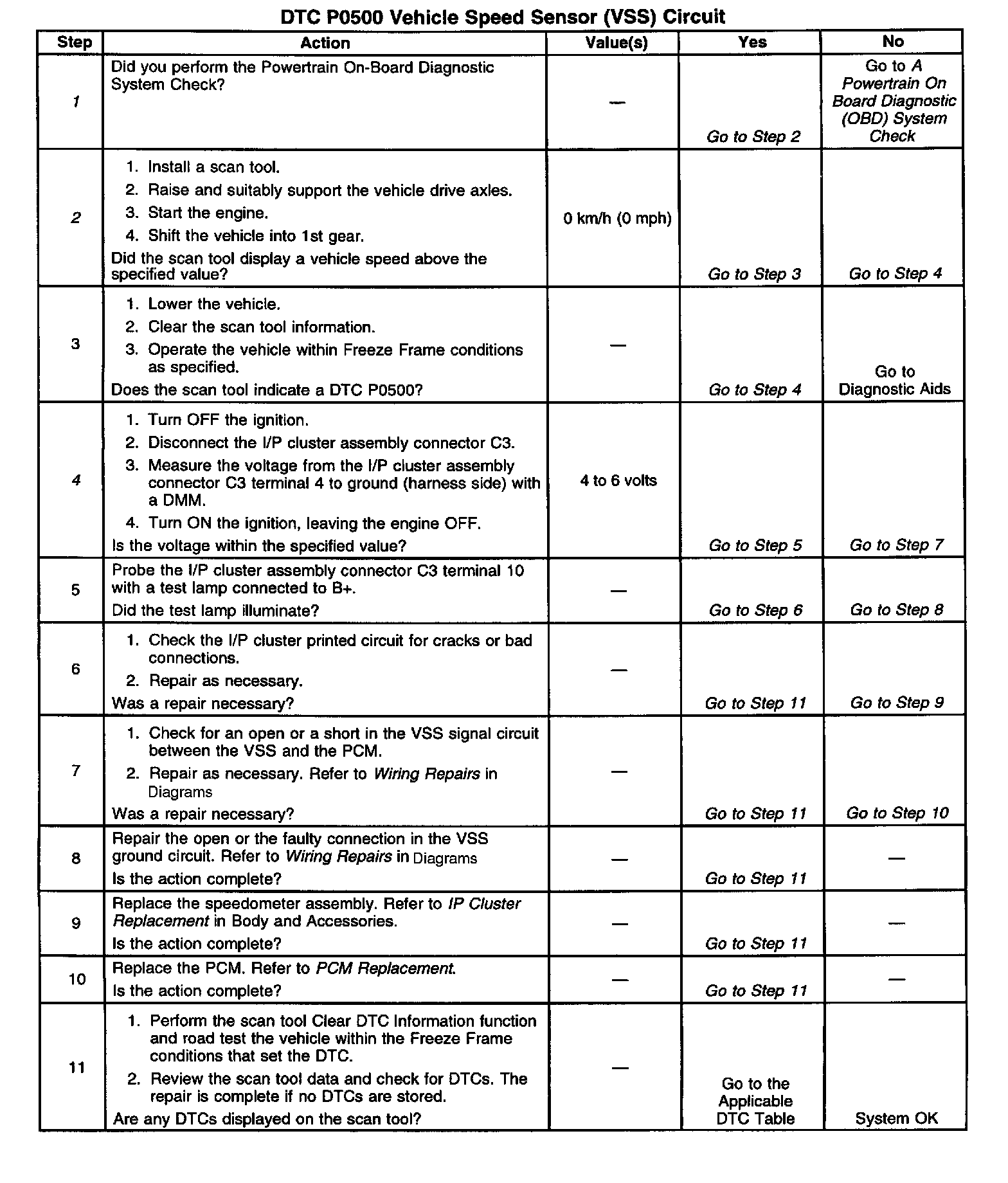 Check for a faulty speedometer cable. A binding speedometer cable may set a false DTC P0500. Make sure that the speedometer cable is free from any restrictions and that the cable has a secure connection to the I/P cluster assembly.
