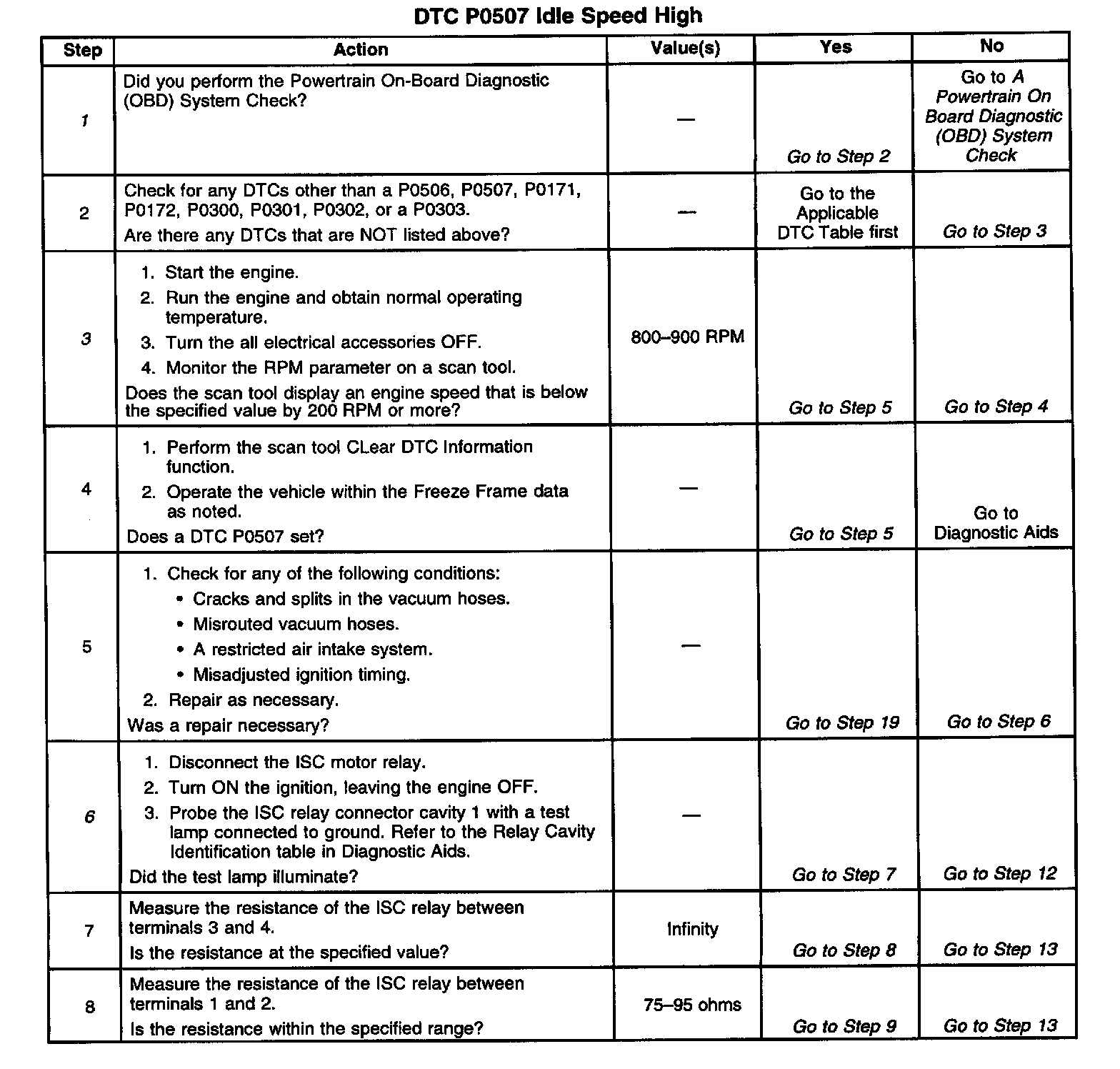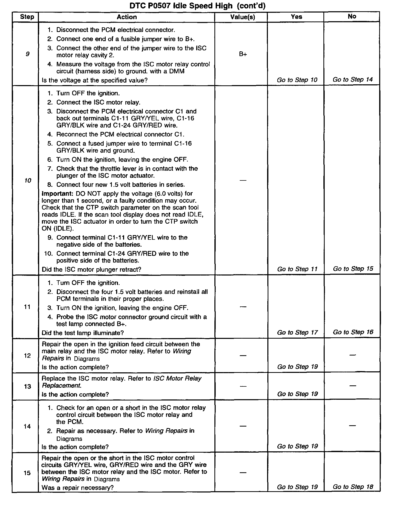 10. This step checks the functionality of the ISC motor and the ISC motor control circuits.