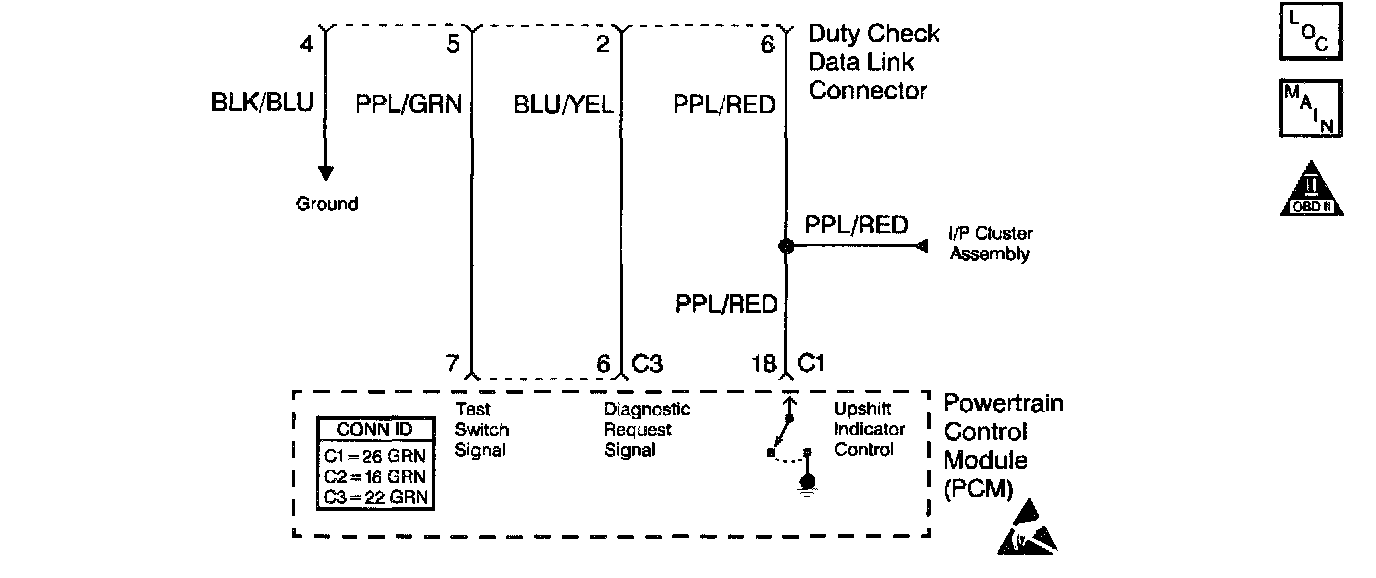 Check for a damaged wiring harness. Inspect the wiring harness for damage that may cause a short to ground. With the engine running, wiggle the wiring harness to the duty check data link connector while monitoring the Spark Advance Adjust Test Switch parameter on a scan tool for an ON display, indicating that the harness is shorting to ground.