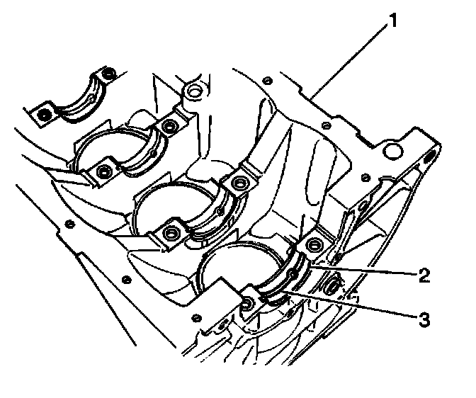 8. Inspect the main bearings for pitting, scratches, wear or damage. Replace both of the upper and lower halves of the main bearings if any of these conditions are found. Any time the main bearings must be replaced, both the upper and lower half should be replaced as a set. Do not replace only one of the halves.