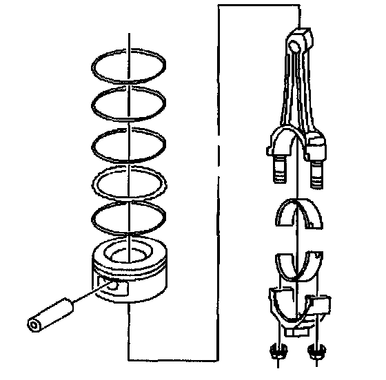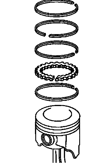 1. Remove the piston rings from the pistons. Use a suitable tool in order to expand the rings.