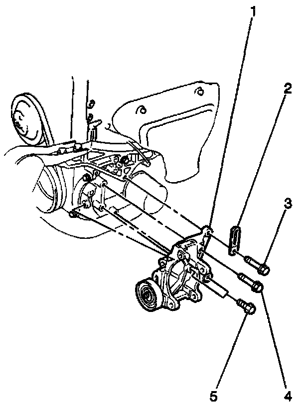 8. Remove the 3 bolts (1,4,5) from the compressor.