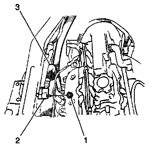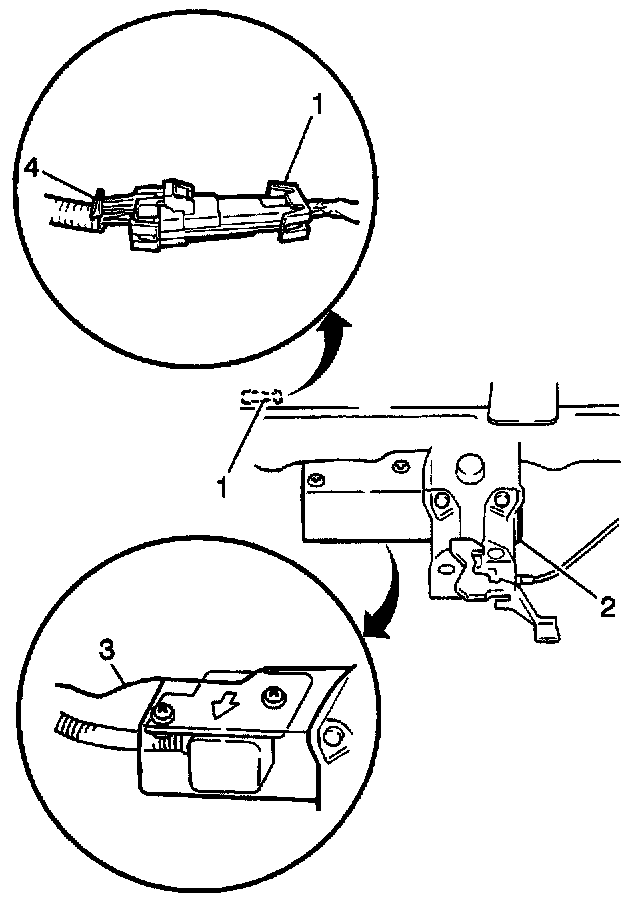 7. Disconnect the electrical connector (1) from the SIR forward discriminating sensor (3).