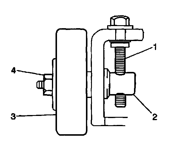 5. Secure the tension pulley lock nut (4).