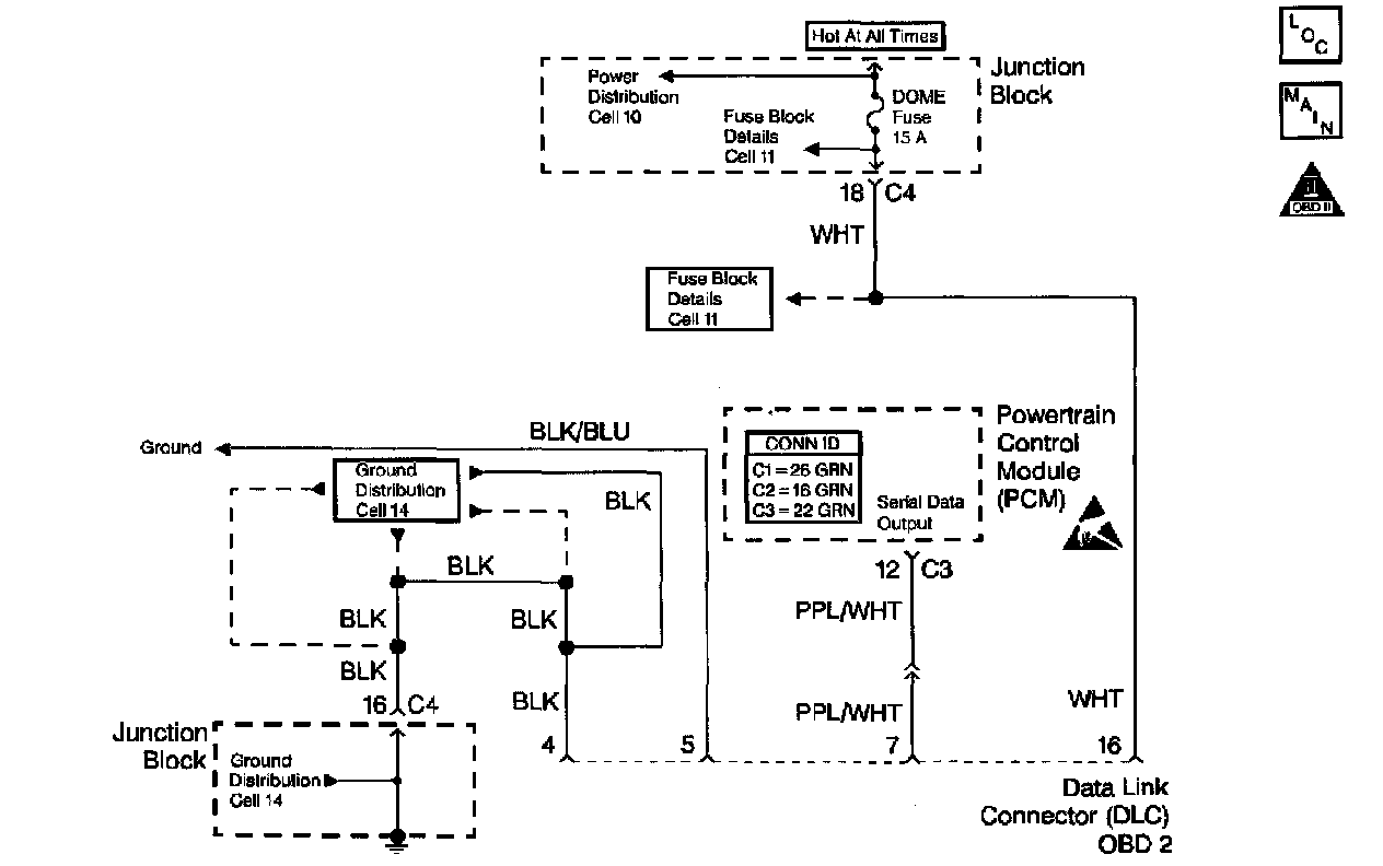 10. The PCM supplies a low current voltage on the serial data circuit. The normal circuit low current will NOT illuminate a test lamp. If the circuit is shorted to battery positive the higher current will illuminate the test lamp.