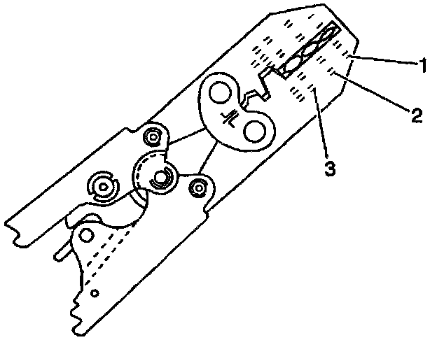 6. Place the splice sleeve in the nest. Ensure that the crimp falls midway between the end of the barrel and the stop. The sleeve has a stop (3) in the middle of the barrel (2) in order to prevent the wire (1) from going further. Close the hand crimper handles slightly in order to firmly hold the splice sleeve in the proper nest.