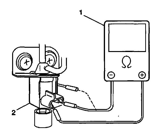 ^ Measure the resistance (1) of the EGR solenoid vacuum valve terminals (valve side). The resistance should be 33-39 ohms at 20°C (68°F).