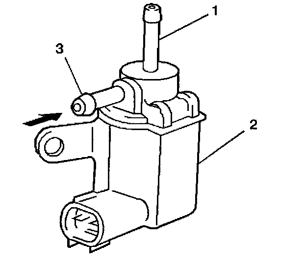 7. Blow air into the [1][2]EVAP tank pressure control solenoid valve port (3). Air should pass through the EVAP tank pressure control solenoid vacuum valve (2) and exit from port (1).