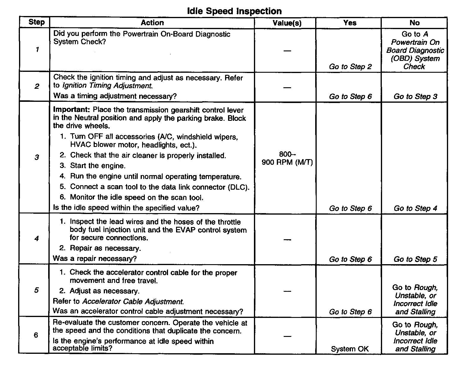 Check the A/C Idle-Up circuit if the engine idle speed is a concern when the air conditioning or windshield defroster are running. Refer to A/C Idle Circuit Diagnosis. Component Tests and General Diagnostics