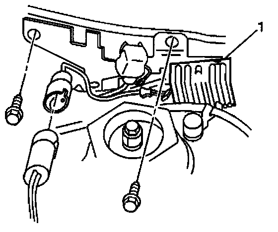 2. Remove the two bolts and the fuel injector resistor (1) with bracket from the engine compartment bulkhead.