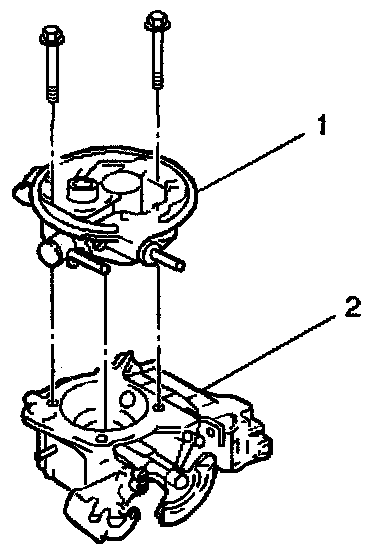 2. Install the upper TBI assembly (1) to the lower TBI assembly (2) and secure with the two screws.