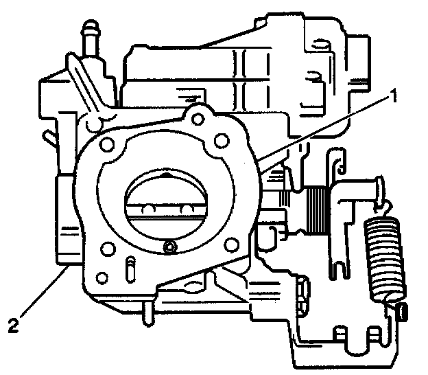 1. Install a new gasket (1) onto the TBI lower assembly (2).