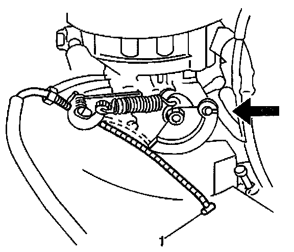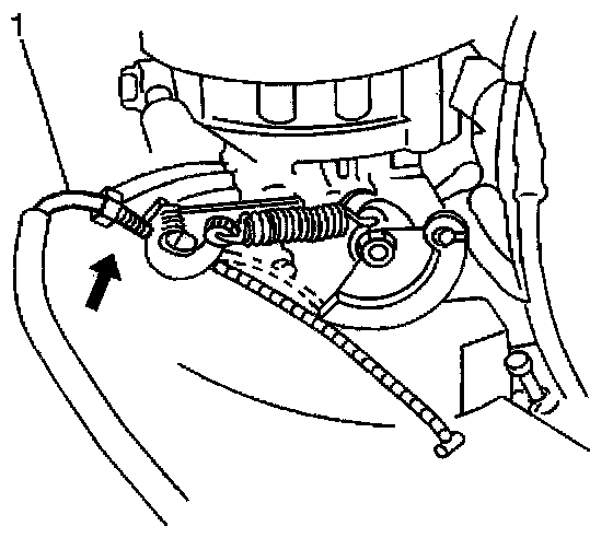 14. Remove the accelerator cable (1) from the cable bracket.