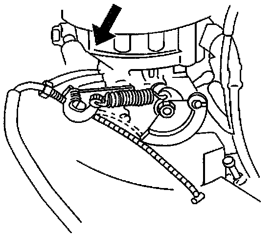 13. Remove the cable end from the slot in the throttle lever.