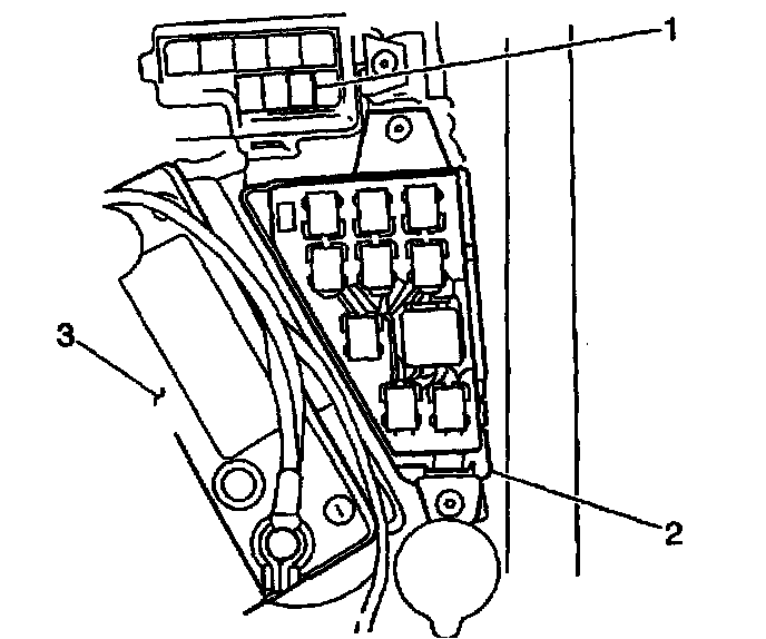 11. Install the FI fuse (1) to the fuse and relay box (2).