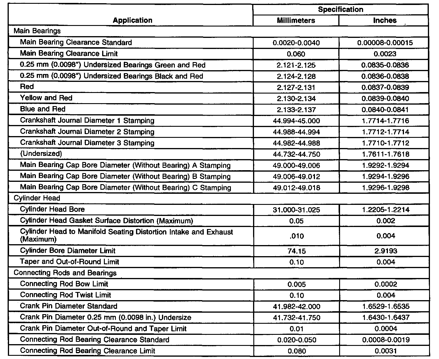 Engine Mechanical Specifications