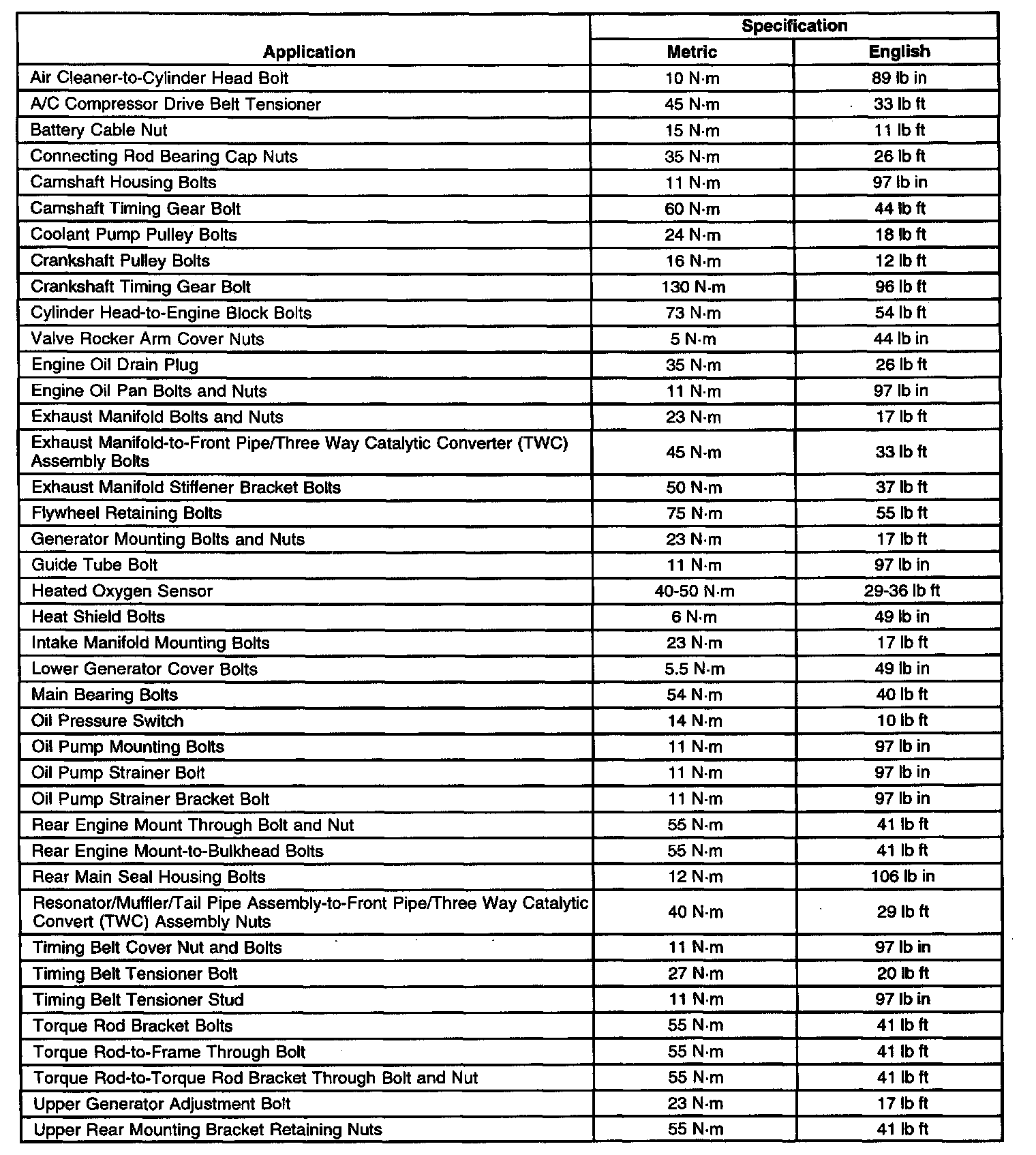 Fastener Tightening Specifications