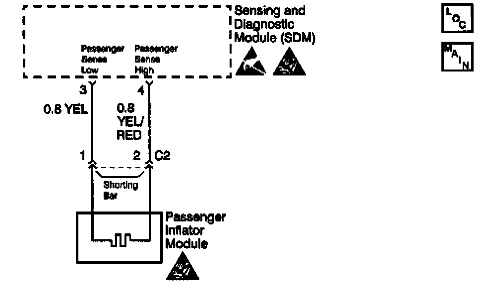 2. This determines the passenger deployment loop voltage difference measured by the Inflatable Restraint Sensing and Diagnostic Module (SDM).