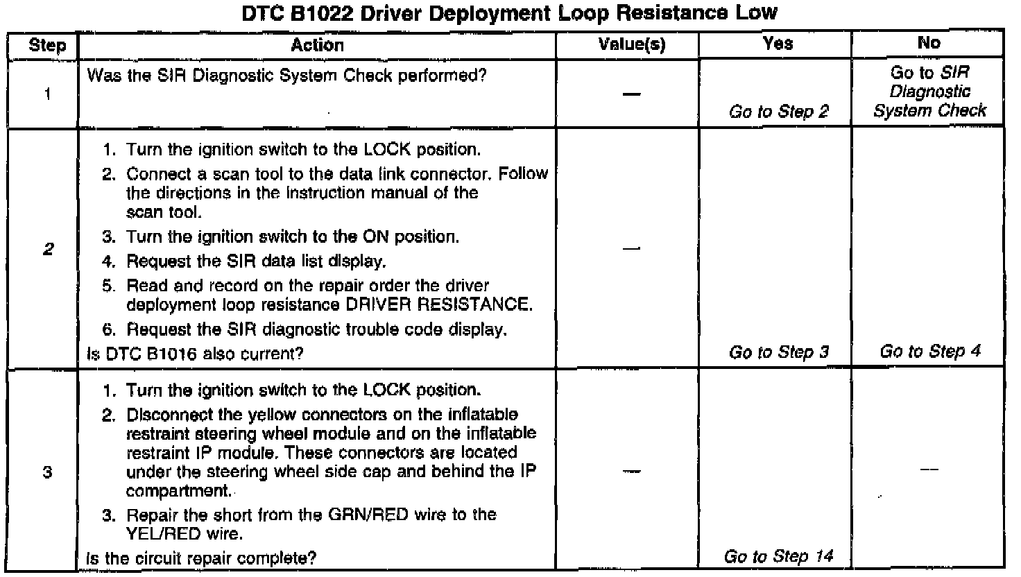 Numbers below refer to step numbers on the diagnostic table.