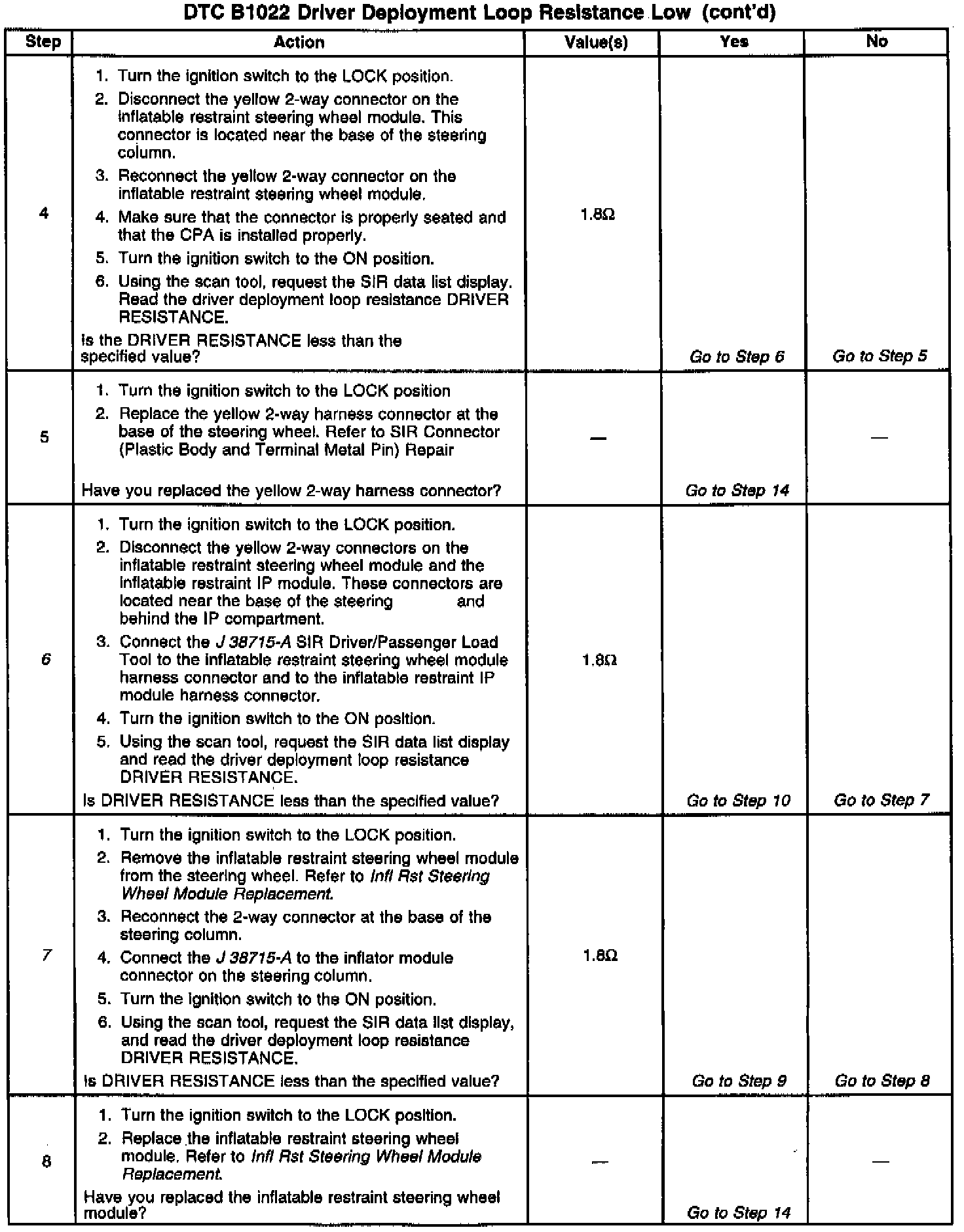 ^ Clear the Current DTC when the resistance of the driver deployment loop is more than 1.8 ohms and the ignition switch is cycled.