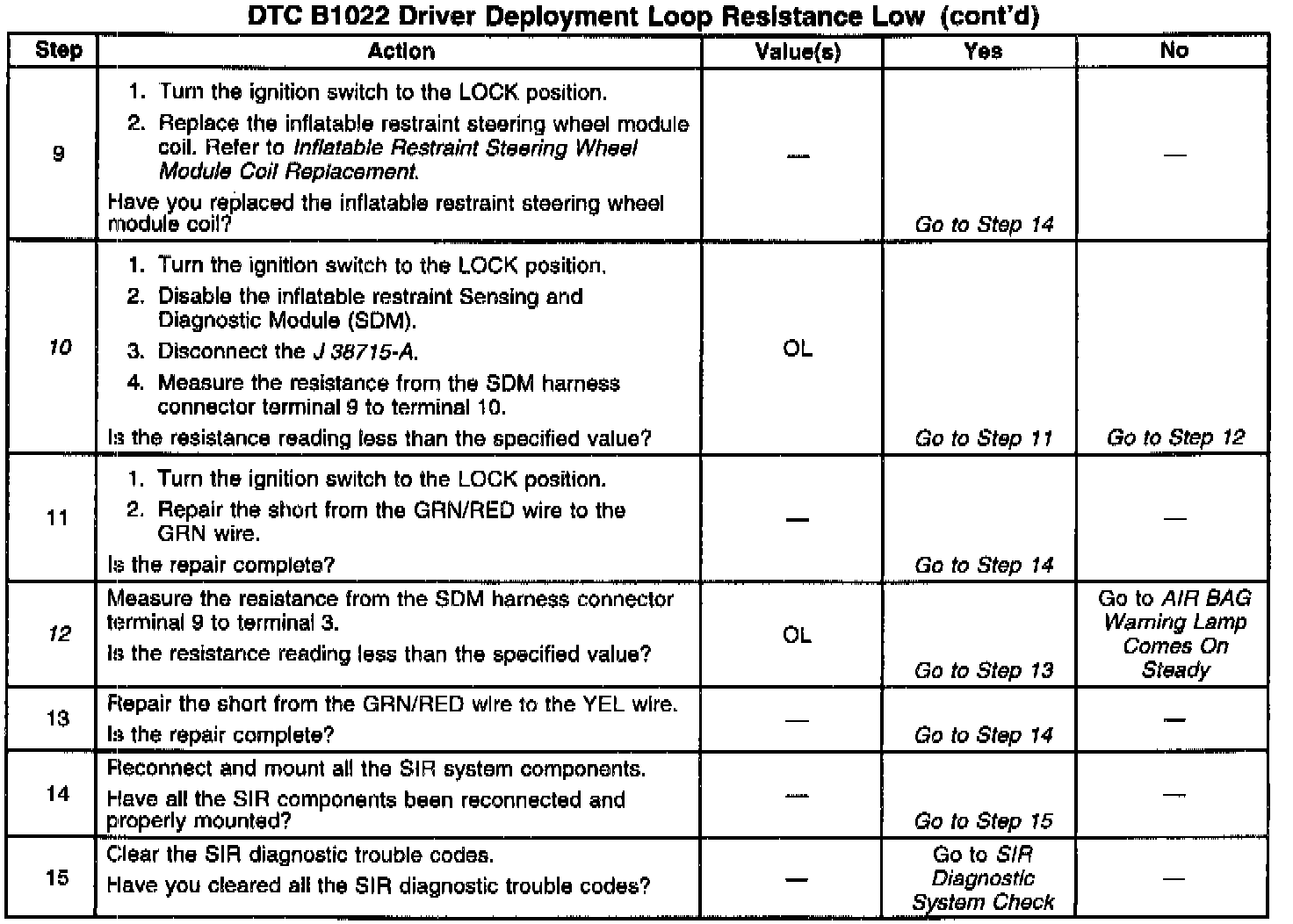 7. This test determines whether the malfunction is in the Inflatable Restraint Steering Wheel Module Coil or the Inflatable Restraint Steering Wheel Module.