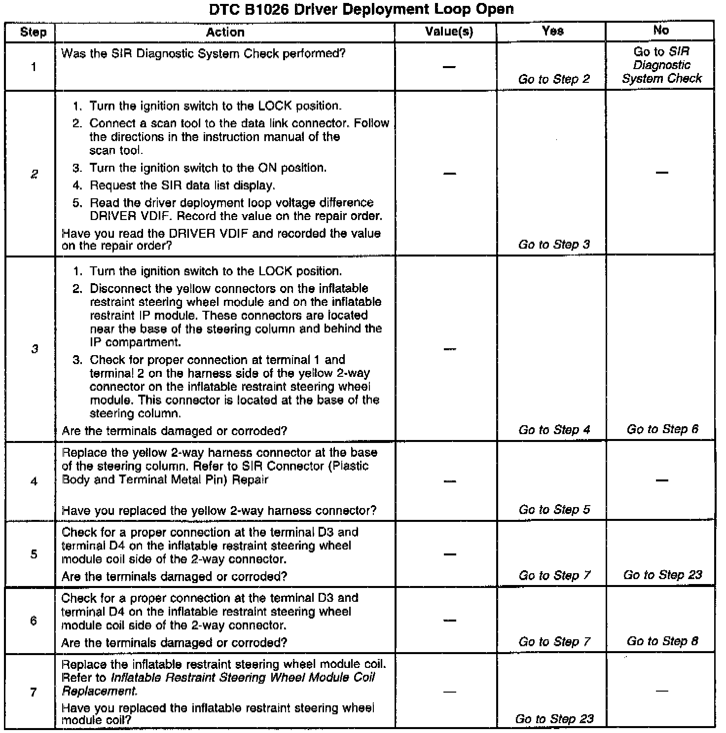 ^ A poor connection at the Inflatable Restraint Steering Wheel Module steering column connector terminal 1 and terminal 2.