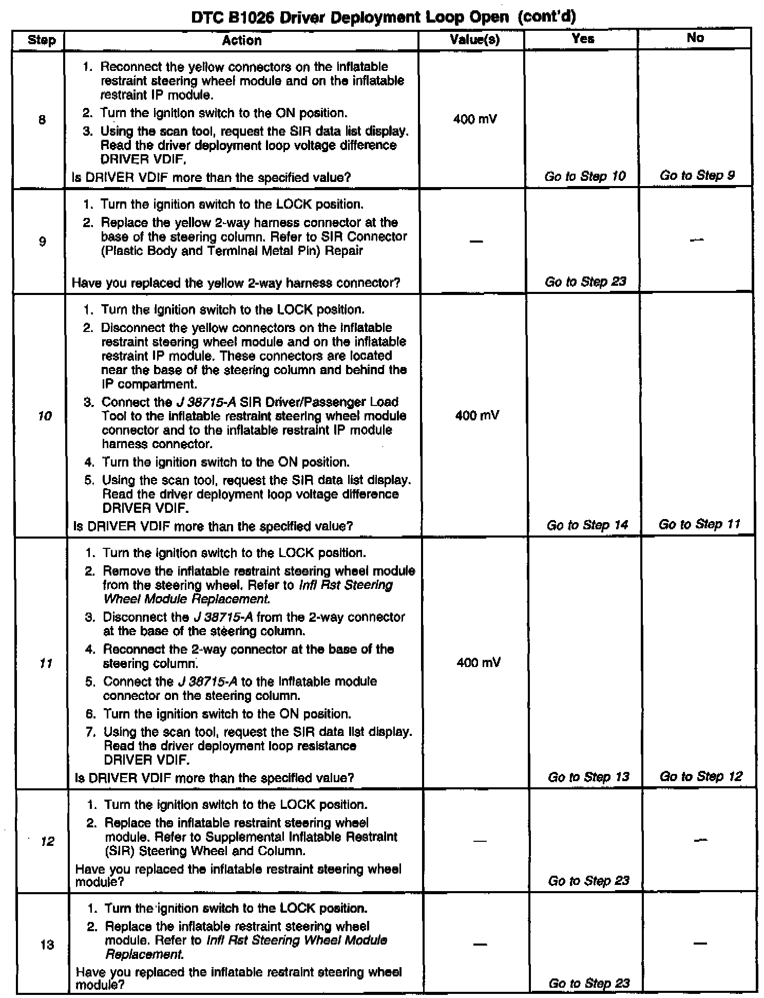 11. This step determines whether the malfunction is in the Inflatable Restraint Steering Wheel Module Coil or in the Inflatable Restraint Steering Wheel Module.