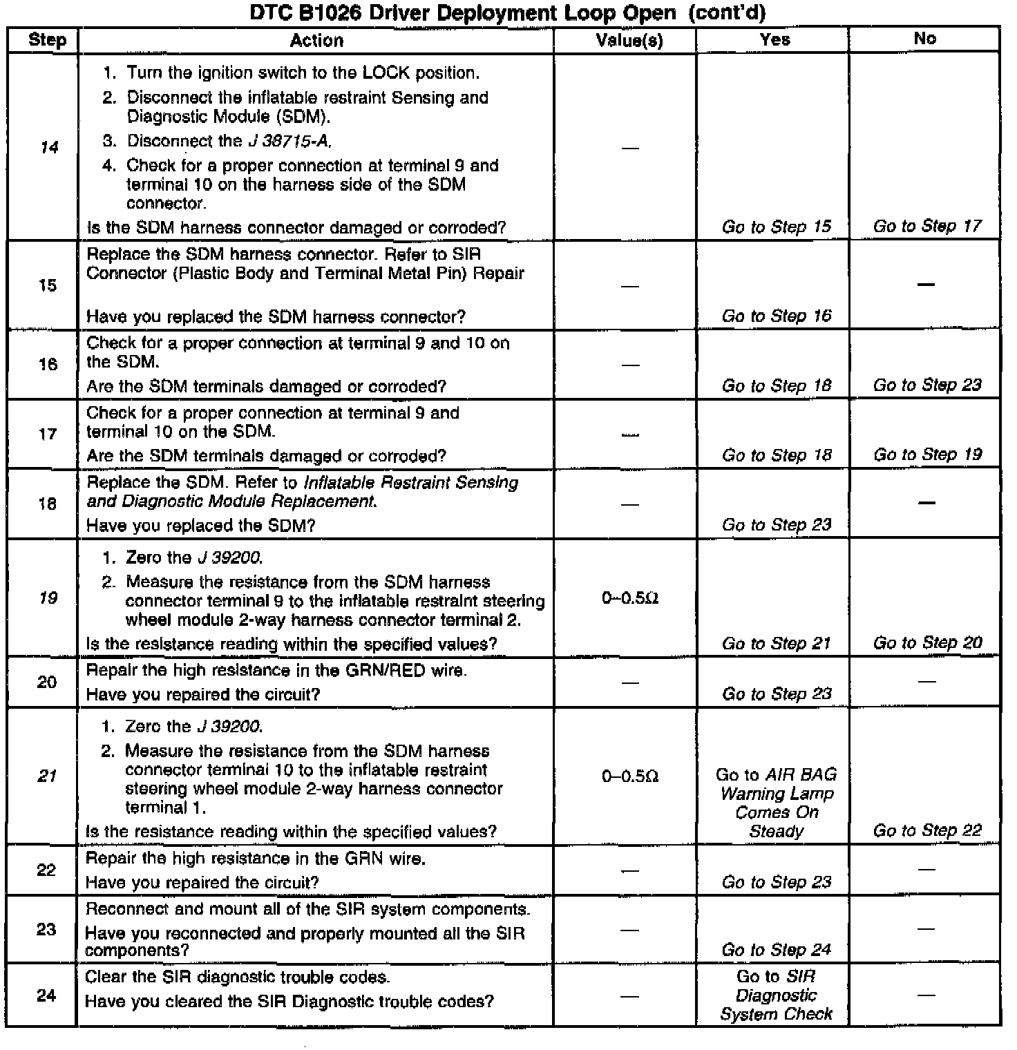 14. This step checks for proper contact or corrosion of the SDM connector.