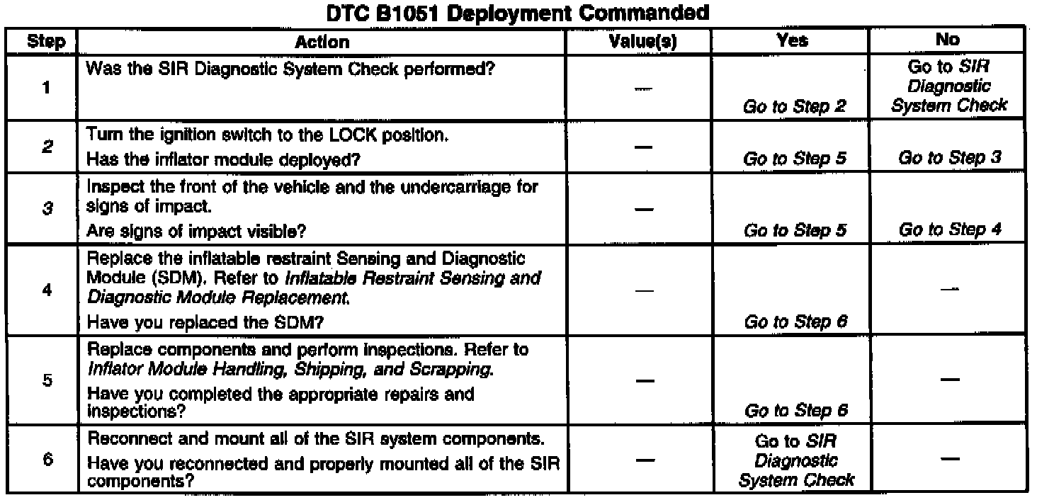 2. If the inflator module has not deployed, DTC B1051 may be set falsely.
