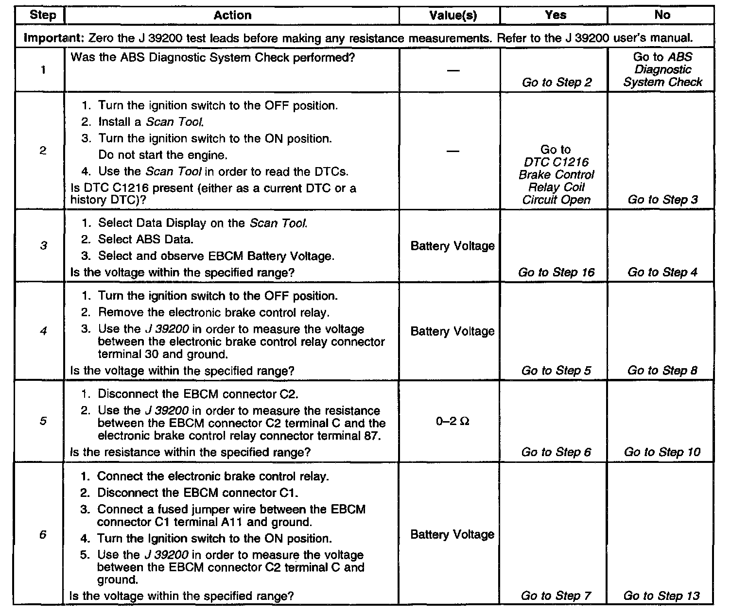 ^ If Diagnostic Trouble Code (DTC) C1214 only sets when the vehicle is initially started in cold ambient conditions (temperature less than 0°C - 32°F), replace the Electronic Brake Control Relay.