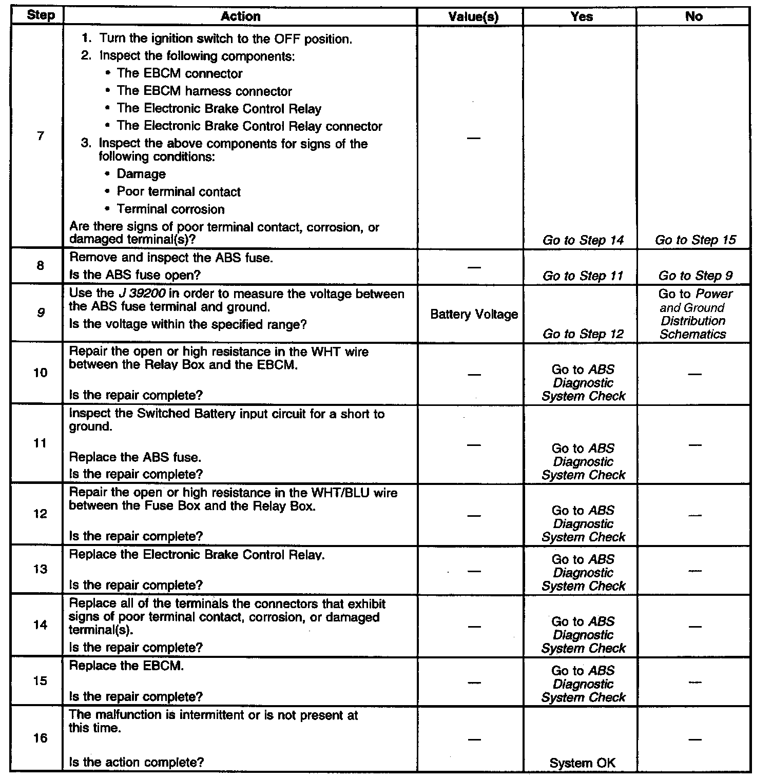 ^ Malfunctioning electrical circuits (open or high resistance) between the Electronic Brake Control Relay and the Electronic Brake Control Module (EBCM) and/or between the fuse box and the Electronic Brake Control Relay