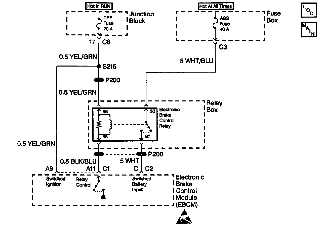 ^ Diagnostic Trouble Code (DTC) C1215 can set only before the Electronic Brake Control Module (EBCM) commands the Electronic Brake Control Relay ON.