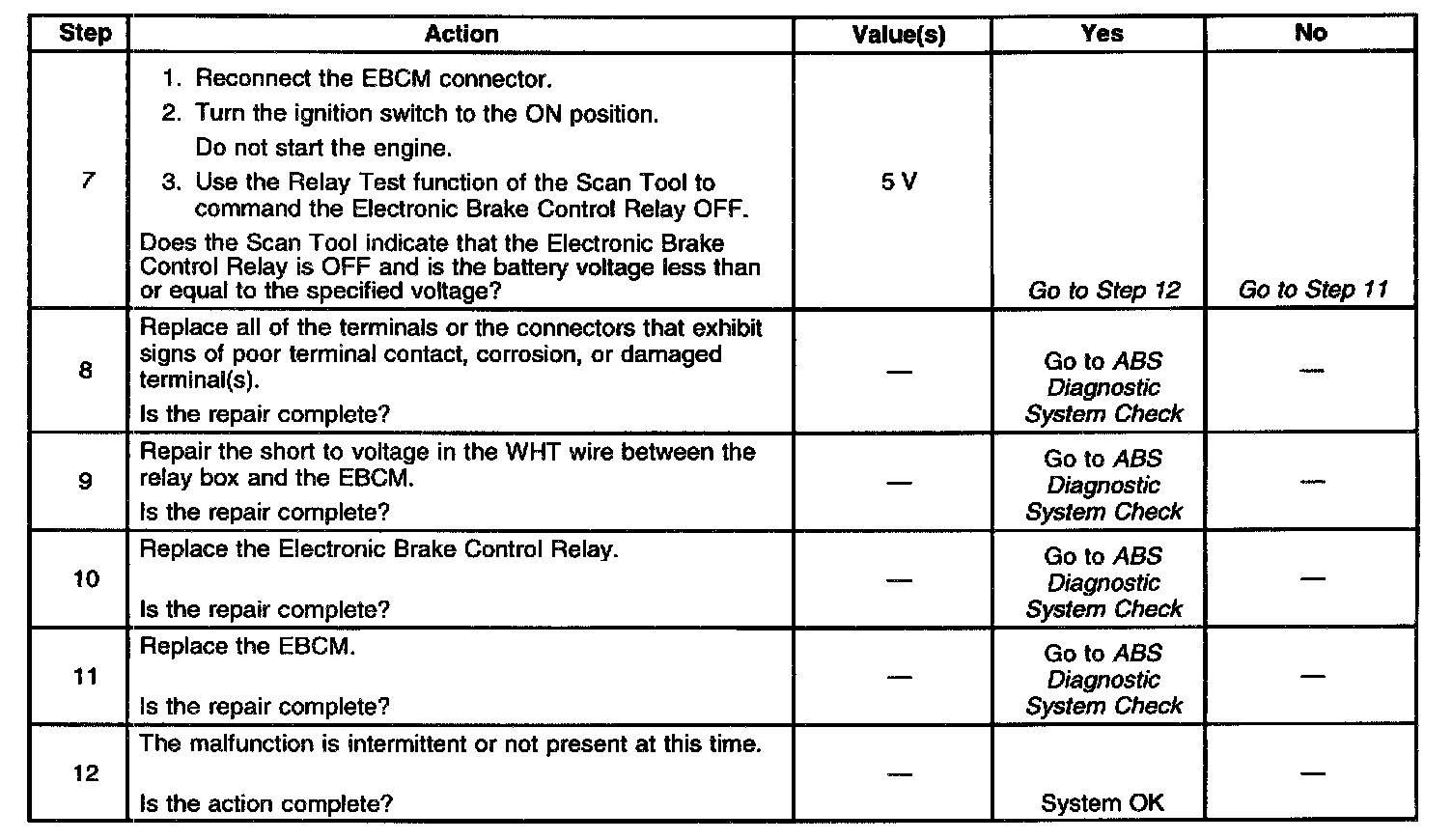 3. This test determines if the Electronic Brake Control Module (EBCM) is capable of controlling the electronic brake control relay as commanded.